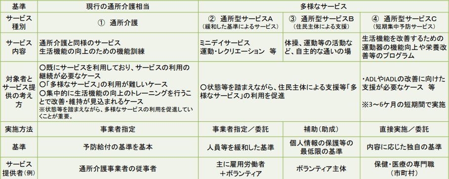 | 現行の通所介護相当 | 多様なサービス |